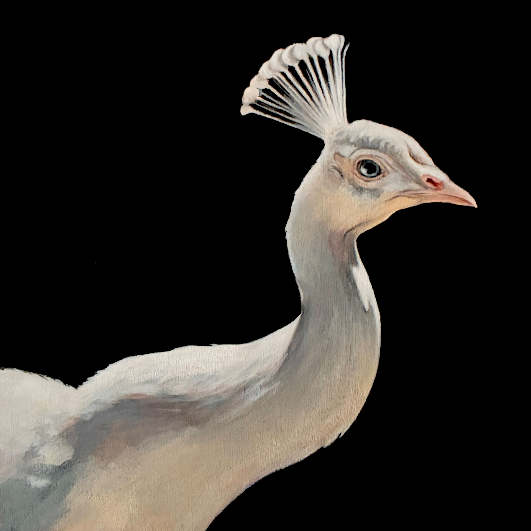 weißer Pfau, 2026 Acryl auf Holz, 20 x 20 cm